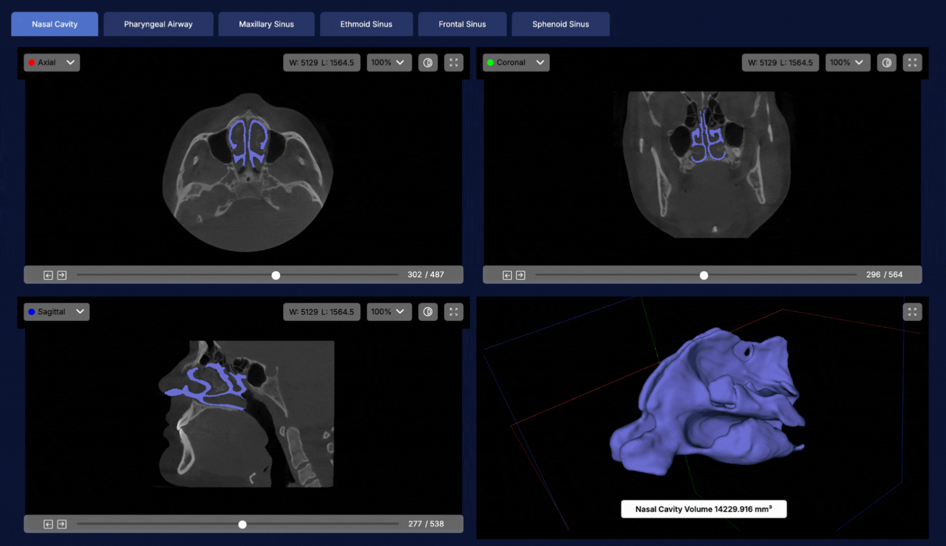 This automatic process reduces the manual analysis burden on clinicians while minimizing measurement errors. Furthermore, the system can perform accurate volume calculations even in patients with different anatomical variations. Especially in the diagnosis of obstructive sleep apnea (OSA), accurate evaluation of airway volume plays a critical role in treatment planning. Similarly, paranasal sinus volume measurements are also an important parameter in the evaluation of sinusitis, cysts, or other pathologies.